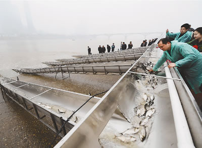 4月1日,工作人员将500万条鱼苗在湖南省长沙市橘子洲码头放生。为保护湘江鱼类资源和水域生态环境,湘江干流从即日起首次全面实施禁渔期制度,并有计划地组织开展鱼类人工增殖放流活动。今后,每年的4月1日12时至6月30日12时为湘江干流禁渔期。