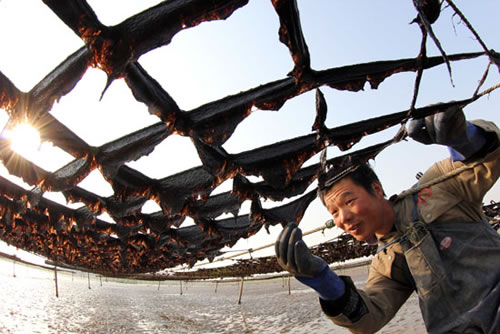 江苏连云港条斑紫菜进入收割期(图)