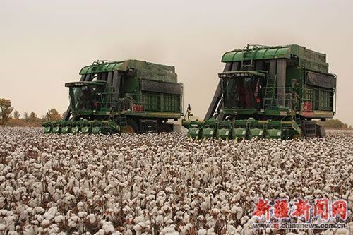 图为10月26日新疆兵团第二师三十三团场机采现场。