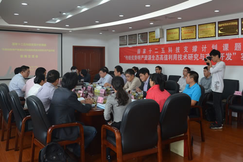 国家“十二五”科技支撑计划“传统优势特产资源生态高值利用技术研究与产品开发”课题针对茶、花生行业资源利用度低等共性问题,从全茶、茶有效成分、茶渣副产物、茶叶籽等茶叶资源的全价利用、跨界开发开展资源生态高值利用的关键技术研究和产品开发,六个研究任务团队承担了研究任务。课题组经过两年多的努力和协调配合实施,已完成阶段研究任务,并取得阶段性成果。为了课题组任务团队间的相互交流、高质量的完成计划任务,在参加单位现场召开了交流汇报评审会。各任务团队负责人汇报了各自的研究进展、取得的阶段性成果、经费执行情况和下一步研究计划,课题实施以来开发茶资源跨界利用产品6大类12种以及相关的关键技术,在茶叶活性物质的单体分离和新功能研究等多方面取得了阶段性成果,建成了新产品中试生产线,已形成茶资源跨界应用技术8套,培养了专业技术人才,取得了国家发明专利授权6项,和通过部级鉴定成果5项,已发表论文54篇,出版著作2部。