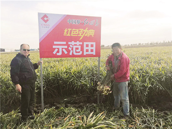 在河北省唐山丰润区新军屯的红色劲典示范田里,使用了红四方产品15-5-25高塔硝基和20-20-20水溶肥的大姜长势喜人,农户王文武喜笑颜开,预计亩产量1万斤。根据现价3元斤来估算,亩收入1.2万元。