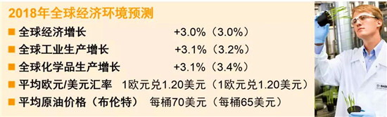 由于以上原因,巴斯夫2017年年报当中对2018年的展望于9月底调整如下(括号中为2017年年报当中的预测):