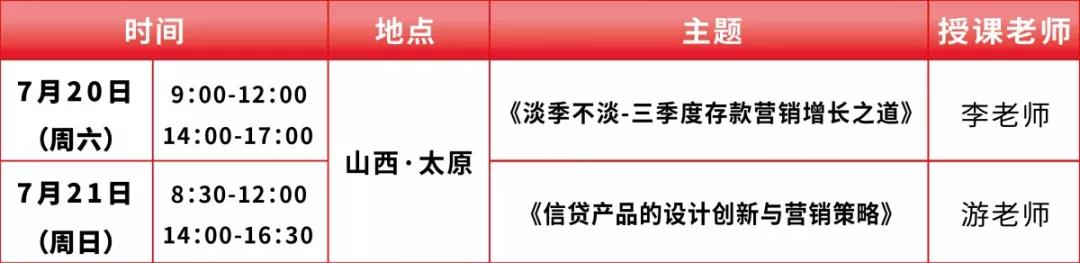本研修班针对农商银行二、三季度的市场情况,特别定制,解决农商银行三季度存贷款营销难的问题,做到:给思路、给工具、给方法、能落地!