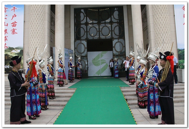 “两展一节”云南馆前热闹的欢迎仪式,但效果不佳。