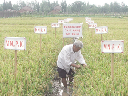 湖南湘阴系国家科技入户工程示范县,县农业局土肥站今年共建立近五十个田间试验区、四万余亩测土配方施肥示范田,全县测土配方施肥技术推广面积达六十多万亩,为农民节本增效达六千万元以上。