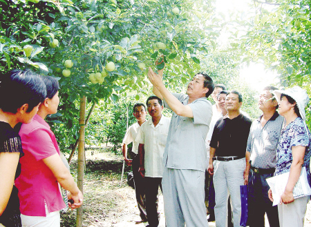 近日,江苏东海县人事局组织果树专家来到该县马陵山果园,现场为果农讲解果树病虫害防治、施肥、修剪和果品的营销等知识,使果民的果树管理水平得到了提高,为果品的丰收奠定了基础。