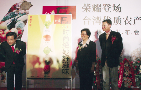 8月1日,“台湾水果在北京”新闻发布会在北京举行,台湾农业组织借北京奥运商机将农产品挺进大陆市场。首波推广的台湾水果“F4”——菠萝(凤梨)、番石榴(芭乐)、杨桃、芒果将进入奥运村,供各国家和地区选手享用。中新社传真 王磊 摄