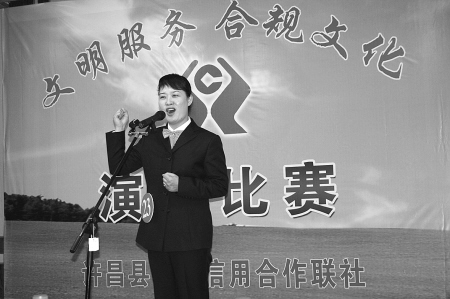 近日,许昌联社举办了“文明服务,合规文化”演讲比赛。图为该联社员工正在发表演讲。张广义 摄