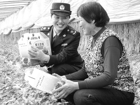 江苏省东海县工商行政管理局在认真开展商标知识产权护农保增收的过程中,积极引导农业经济专业合作社社员们树立利用商标的社会效益以此来提高无公害农产品的经济附加值,力争现代化农业个个都有自己的“身份证”。