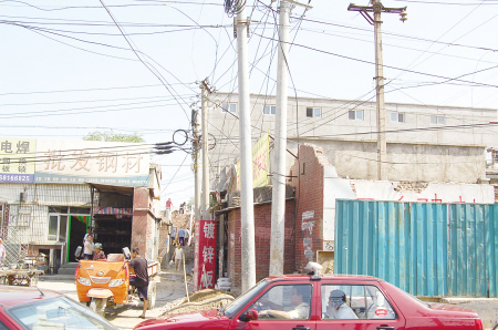 场景三:记者在胡同里经过时正好听到几个居民在聊天:“这两天太热了,得长开着空调。可前段时间,我家里的电灯忽然一明一暗,忽然就烧了,我赶紧关掉电视,接着就听到电视机里传出‘噼啪’的响声,吓死我了……”听了他们的对话,记者看了看附近的电线,记者发现,由于私搭乱建,这里很多房屋与电线间根本没法达到“水平距离3米”的安全要求,一栋楼房甚至抢占了电线周围的空间,还有有人嫌电线离窗口太近,干脆拿几根竹竿将其“架”到一边。