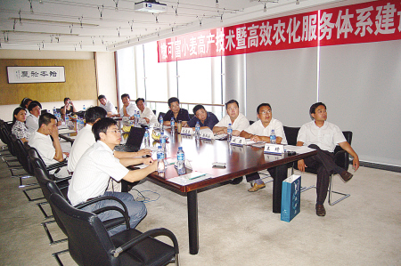 本报讯 (实习记者 周战衡)2009年7月13-14日,中国—阿拉伯化肥有限公司以华北、华中小麦施肥研究为主要议题,在秦皇岛总部召开了“2009年撒可富小麦高产技术暨新型高效农化服务体系建设研讨会”,旨在研究小麦高产技术、推行符合地区需求的农化服务体系,促进我国农民增产增收。来自全国各地的农化专家和中阿公司副总经理杜显兰、农化部主任贾可、河北农业大学博士生导师刘建玲进行了深入地交流探讨。