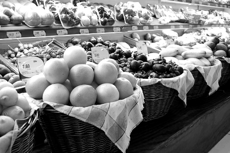 适用于葡萄、柚、苹果等圆形的水果陈列,像高丽菜、莴苣等蔬菜也可归于圆体物。