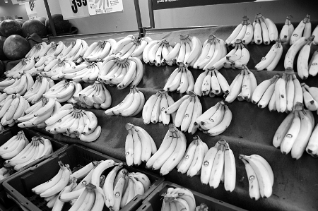 将葱等长形的商品朝一定的方向排列时,边面的地方就会形成一条直线。这种陈列的形态称之为“茎排型”。
