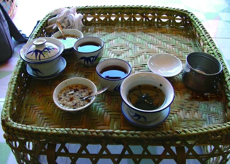 三道茶,传统上是白族用来作为求学、学艺、经商、婚嫁时,长辈对晚辈的一种祝愿。现今应用范围已日益扩大,成了白族人民喜庆迎宾时的饮茶习俗。