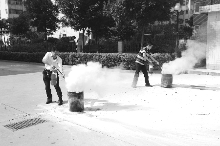 8月28日,河南省安阳县农村信用联社举办了安全防范技能练兵比武活动。图为消防技能演练现场。田永峰 邓利杰 摄