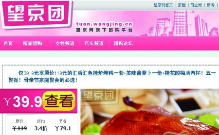 望京网建立的第二年,就基本实现了盈亏平衡,第三年开始盈利。2010年10月份,望京网开辟了新的栏目——望京团。