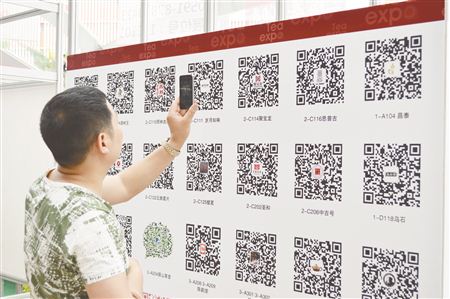 五月的广州春季茶博会上,企业的微信密密麻麻排成微信墙,让人感受到科技之美。 |
