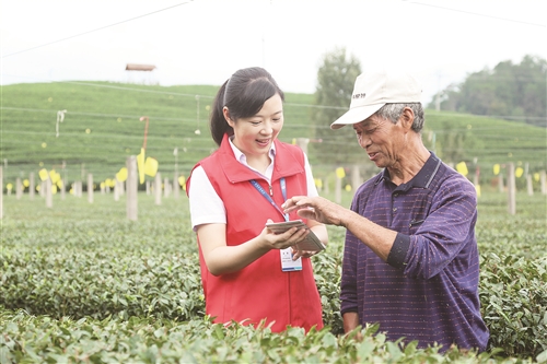 图1为淳安农商银行客户经理深入田间地头与客户亲切交流。