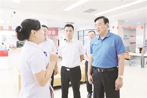 图2为山东省农村信用社联合社党委书记、理事长孙开连(右)在“太极文化”主题银行调研。