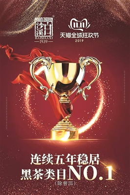 公司的经典明星产品天茯茶荣获2019年“双十一”安化黑茶类目单品销售第一。单品销售额TOP20排行榜白沙溪黑茶占据10款。各大子品牌和系列产品也在此次“狂欢节”中得到了广大黑茶爱好者的认可和青睐。2019“双十一”期间,白沙溪产品仅在天猫、京东两大平台销售额就突破800万元,全网销售额更是突破2000万元。本次“双十一”更是首次实现线上线下同步促销,让更多的茶友享受到了实惠。“双十一”取得如此佳绩,离不开茶友们的大力支持和白沙溪人对过硬品质的追求。白沙溪将不忘历史,坚守初心,争取再创佳绩。
