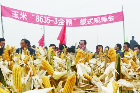 “8635-3金鼎模式”的巨大成功,无疑给中国大农业转型增添了浓妆重彩的一笔。河北海鼎公司总经理李坎温在研讨会上说,玉米“8635-3金鼎模式”是经过20多年的潜心研究,在几十种种植模式中筛选出来的精华,是农业现代科技的综合集成。它不仅宣告了我国玉米近500年来“行播单棵”栽培历史的结束,进入了穴播“一播三苗”的新时代,同时,极大地降低了农民朋友的劳动强度,突破了近30年来我国玉米难以大范围增产的“瓶颈”。该模式的成功,将成为我国玉米栽培史上的一个重要里程碑。