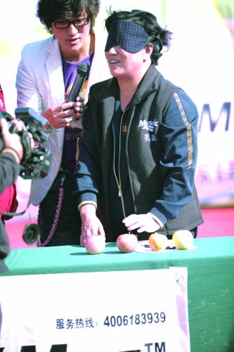 为了带动大家的积极性,活动还安排了各种有趣的小游戏,其中闻香识苹果就是一项。每位参赛队员必须把眼睛蒙住,通过气味辨别苹果的品种。