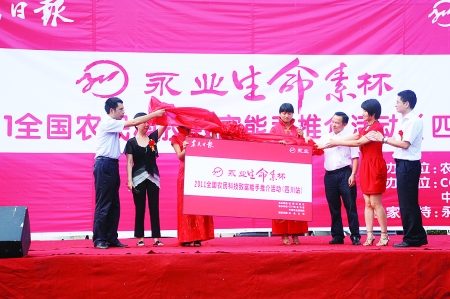 近日,“永业生命素——2011全国农民科技致富能手”推介活动四川站活动在四川彭州蒙阳镇隆重举行。该活动由农民日报社主办,中央电视台农业频道和中国农业新闻网协办,永业公司全程冠名支持。该活动将在各地推介选拔致富能手,并最终推选出10个最具代表性“全国农民十大科技致富能手”。图为活动现场。 晓 菊 摄