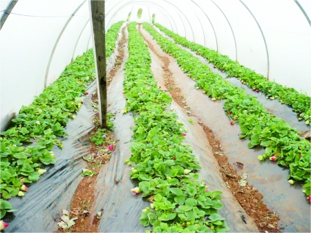 作用功效:总体长势好,并提早成熟2周。果个均匀,畸形果少,颜色艳丽,口感香甜,比一般草莓价格可每斤提高10余元,受到前来采摘市民的追捧。
