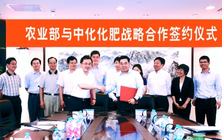 近日,中化化肥有限公司与农业部科教司正式签署战略合作备忘录。中化化肥有限公司总经理冯志斌与农业部科教司司长白金明代表双方在备忘录上签字。