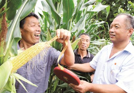 近日,鲁西化工销售公司农化服务人员对使用鲁西牌缓释肥的示范用户进行回访。农民普遍反应施用鲁西缓释肥24- 8-10后,玉米穗大、粒饱满,预计亩产达到1400斤。