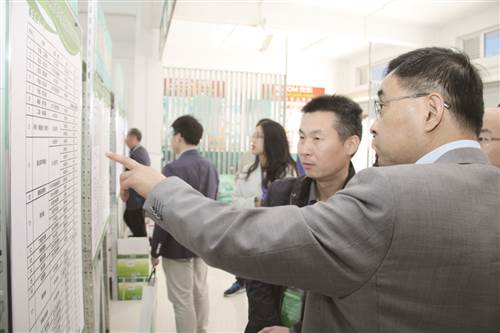 ⑤常熟市人民政府副市长范建国(右)向中华合作时报社副总编辑、中国农资传媒总编辑曾峰(左)介绍常熟市农药集中配送工作开展的相关情况。