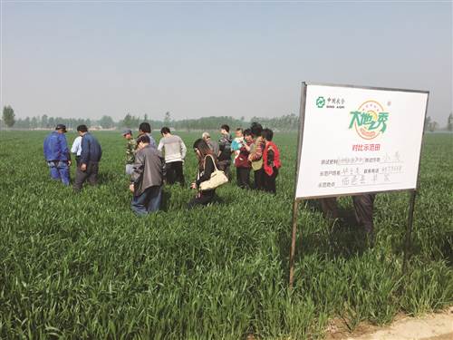 在项目实施过程中,中农控股践行国家惠农政策的同时还提供农化知识讲解等方面的服务,定期带领专家到基层为农民传授科学施肥的方案,并为农民解答种植中遇到的问题。闫保福告诉农民:小麦正常发育与否与播种量和播种日期有关,最佳播种量在17-25斤之间,如果10月10日播种,小麦正常分蘖达到3-4根,秸秆不还田的土地播种18斤,秸秆还田的土地播种25斤,晚播一天需要增加1斤种子。而且,在冬天浇冻水是必要的步骤,小麦苗是否冻死与极端的气候、干旱和浇冻水这三者有关,浇冻水有利于小麦安全过冬。小麦只有经过严寒完成春化作用后才能长出饱满的粒。闫保福还现场传授简单易懂的浇冻水最佳时机:头一天晚上在院落里放一碗水,第二天早上看见水结冰,而中午太阳出来后冰化了,这个时间是浇冻水的最佳时期。