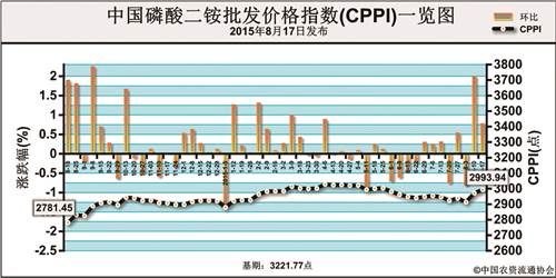 上周(8月10日-8月14日),磷酸二铵市场整体持稳,局部稳中小幅上扬。8月17日,中国磷酸二铵批发价格指数(CPPI)为2993.94点,环比上涨57.77点,涨幅为1.98%;同比上涨241.51点,涨幅为8.85%;比基期下跌250.37点,跌幅为7.77%。