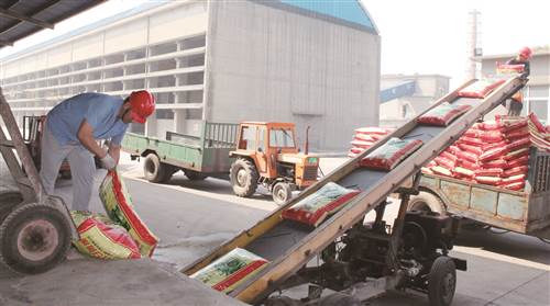 1-8月份,山东红日阿康公司共销售复合肥51万余吨。近年来,该公司依靠科技创新,研制开发出生物科技肥、水溶性肥、中微量元素肥等多款新产品,受到用户的好评。图为红日阿康公司复合多酶系列复合肥发往市场。