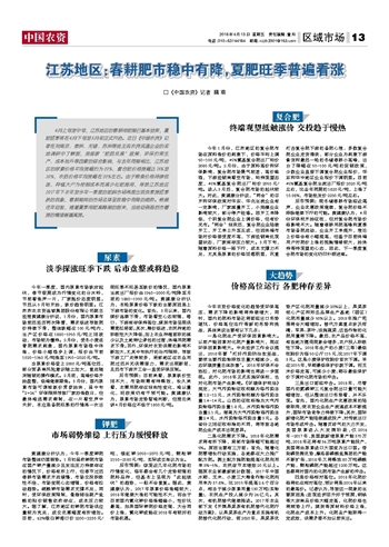江苏地区:春耕肥市稳中有降,夏肥旺季普遍看涨