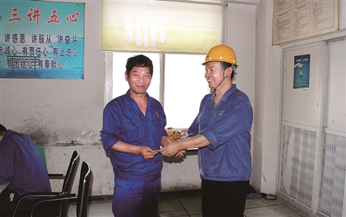 为纪念建党97周年,6月14日至7月6日期间,安徽六国化工股份有限公司以“不忘初心跟党走,牢记使命做贡献”为主题,开展纪念“七一”主题党课、党内推优评优、党内关怀、革命传统教育、扶贫走访帮扶等系列活动。同时,结合“两学一做”常态化制度化和深入环境治理再提升专项整治,开展以党史和党建知识测试、党员义务劳动、环保行动志愿服务等为内容的“党日+”活动,强化党员身份意识、政治意识、责任意识、服务意识和廉洁意识,永葆党的先进性和纯洁性。图为6月26日,安徽六国公司开展“送温暖”走访慰问活动,为磷酸车间困难党员李高兴(左)送上慰问金1000元。