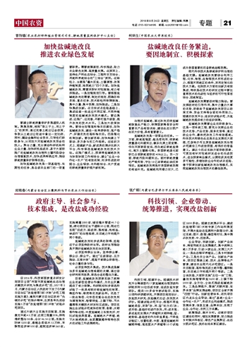 盐碱地改良任务紧迫, 要因地制宜、积极探索