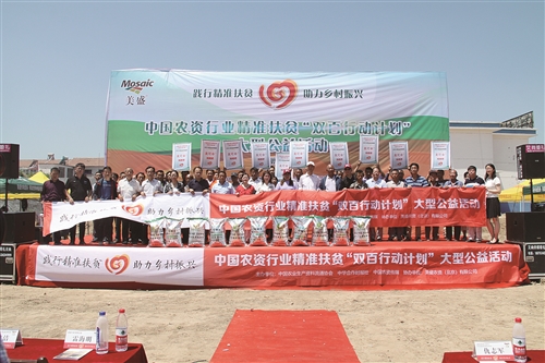 美盛公司作为全球领先磷肥和钾肥综合生产商和供应商,一直积极投身社会公益事业,公司所提供的优质产品和科技服务在全球范围内享有盛誉,“帮助世界种植所需要的粮食”是美盛中国的企业使命。此次积极响应“双百行动计划”公益活动倡议,深入践行企业社会责任 ,为农资企业助力精准扶贫树立了良好的榜样。